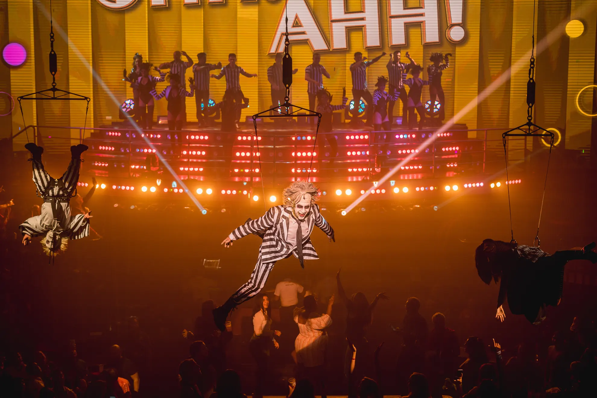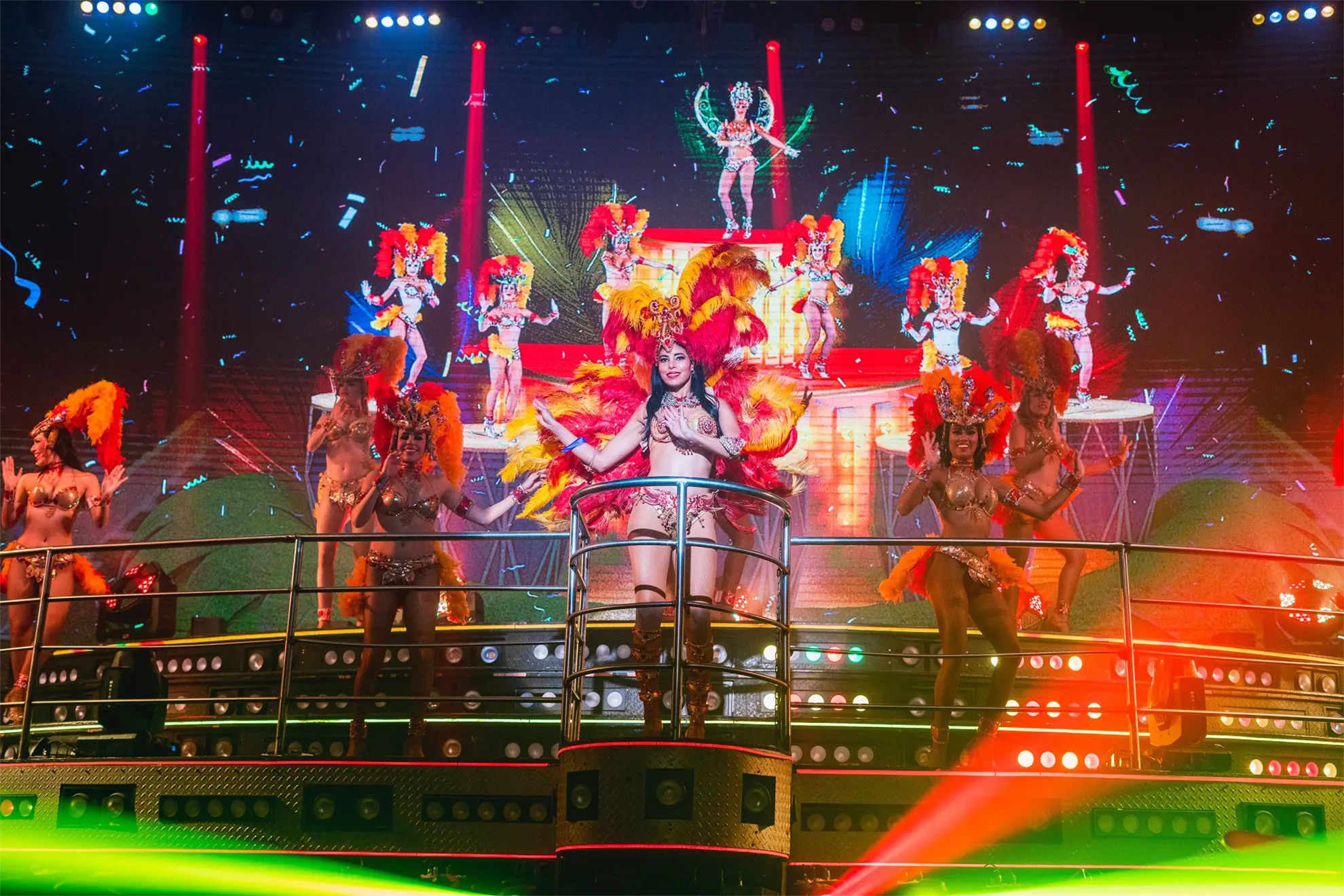 Cada noche emocionantes actuaciones en vivo: tributos a íconos como Michael Jackson, Queen, Elvis, Madonna, Jennifer López y Dua Lipa, junto a espectáculos acrobáticos y efectos especiales que literalmente te dejan sin palabras.