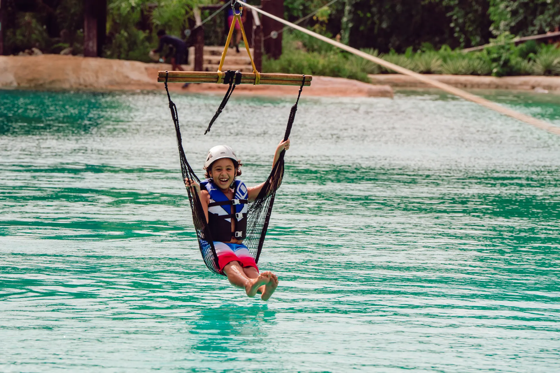 🔷SALTOS AZULES. En esta aventura saltaras de nuestra cuerda tarzán y también podrás disfrutar de nuestro columpio macuya como si estuvieras volando por los cielos! También te deslizaras en una hamaca de agua a toda velocidad y terminarás rodeado de refrescantes aguas e impresionante cascada.